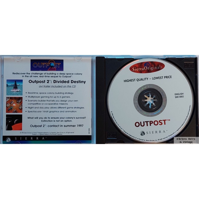 Outpost - Sierra Originals. Brukt PC-spill på CD-ROM i veldig god stand. Kommer i stor eske. Komplett med manual. 3348542025073.
