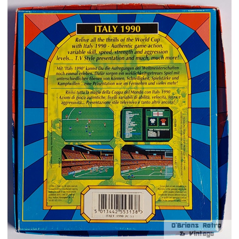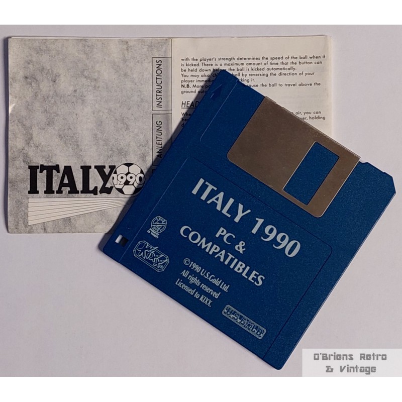 Italy 1990 fra U.S. Gold. Eldre fotballspill til PC. Gitt ut i forbindelse med VM i Italia i 1990. Kommer i eske med 3.5" diskett og med manual. I god, brukt stand. EGA/CGA/VGA, 16 cols./Tandy. Se bilder for mer informasjon om spillet. 5013442553138.