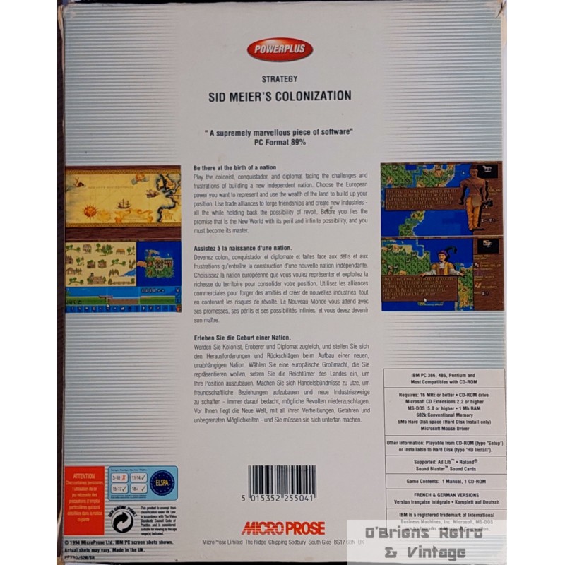 Sid Meier's Colonization til PC på CD-ROM. Brukt PC-spill i god stand, men dessverre noen rifter på esken - se bilder for mer informasjon om dette. Ellers er innholdet i god stand. 5015352255041. UK. Komplett med papirer.