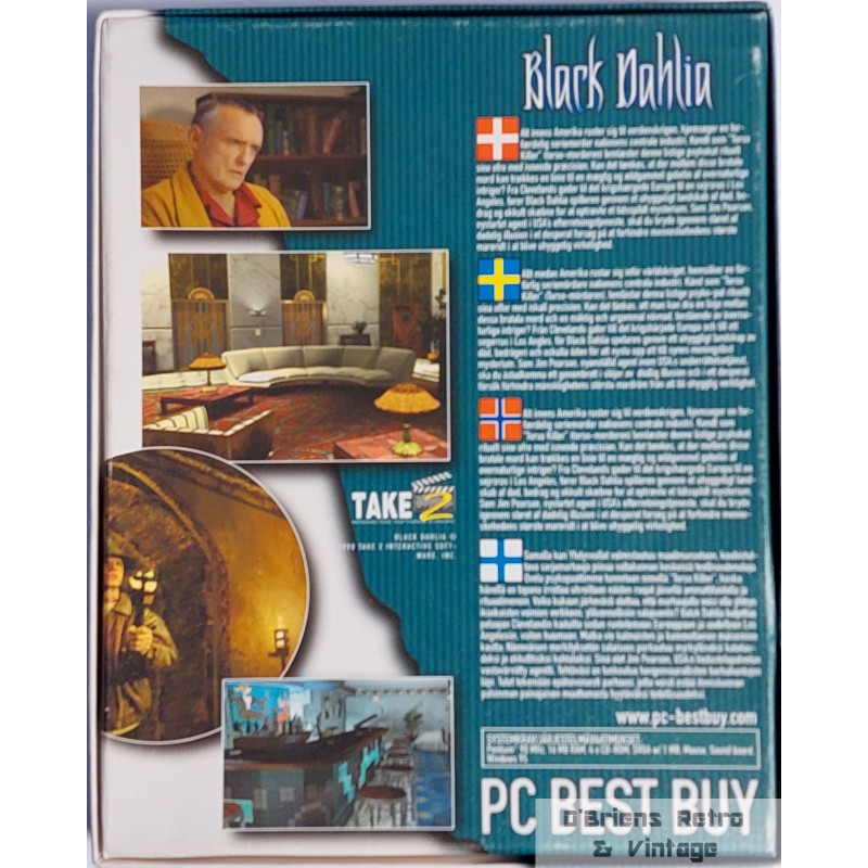 Black Dahlia fra Take 2 Interactive. Brukt spill i stor eske i veldig god stand. Komplett med manual. 1998. Nordic release. 5743211775293. Denmark. Se bilder for mer informasjon om spillet.