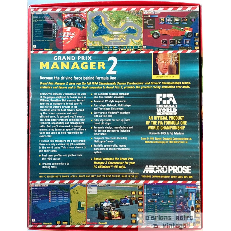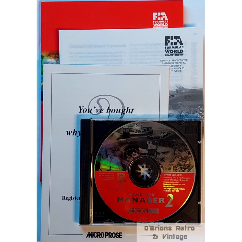 Grand Prix Manager 2 fra Micro Prose. Brukt PC-spill i fin stand. Krever minimum en 486 DX2 for å kjøre. Kommer på CD-ROM. Komplett i eske. Se bilder for mer informasjon om spillet.