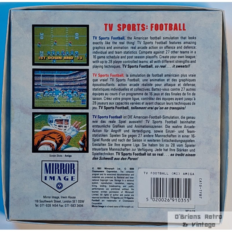 TV Sports Football fra Cinemaware til Commodore Amiga. Fikk i sin tid 92% i The One og 9+% i Zzap!. Komplett i eske og i veldig god stand. Testet og fungerer. Se bilder for mer informasjon om spillet. 5020026910355. 1991, Mirrorsoft Ltd. UK.