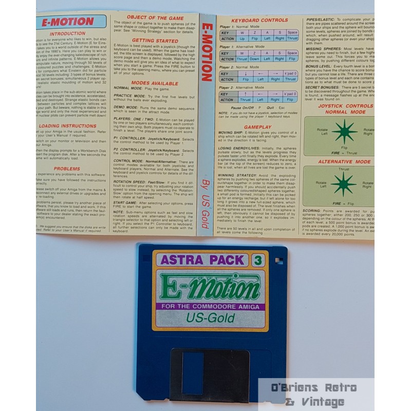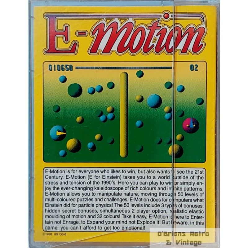 E-Motion fra U.S. Gold til Commodore Amiga. Brukt spill i god stand. Et par sprekker på plastcover, ellers fint. Se bilder for mer informasjon om spillet.
