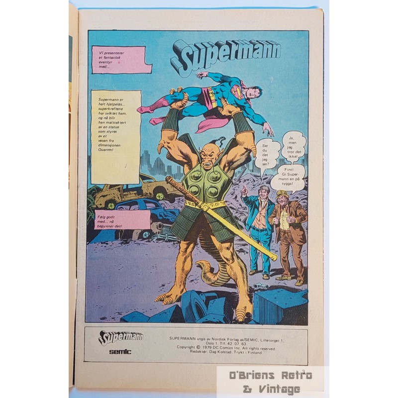 Tegneserieblad med Supermann i veldig god stand. Se bilder for mer informasjon om bladet.