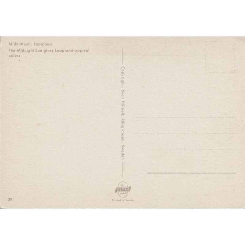 The Midnight Sun gives Lappland tropical colors. Sven Hörnell. 39. Ikke postgått, fin stand, se scans for kvalitet.