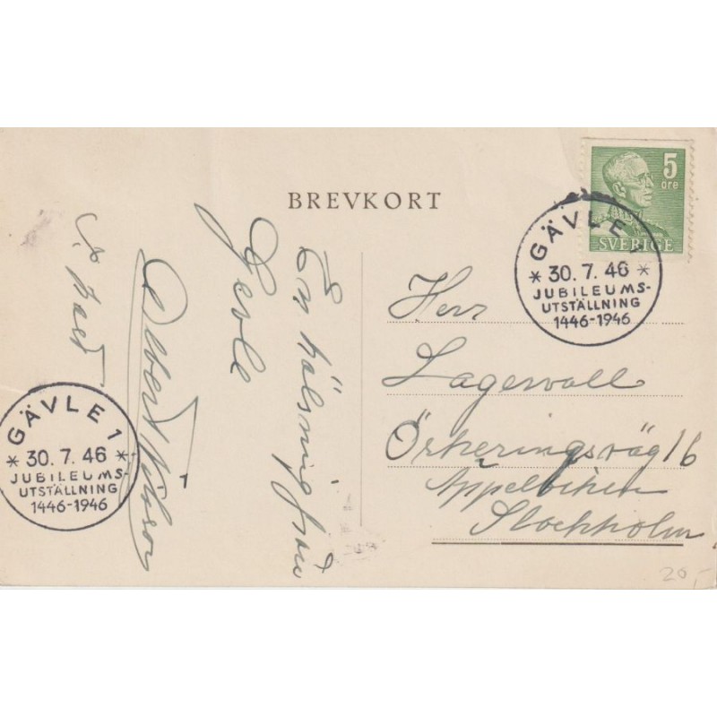 Gävle. Jubileums-utställning 1446-1946. Stemplet. Postgått, god stand, se scans for kvalitet.