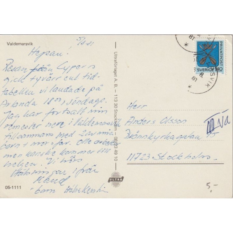 Valdemarsvik. Ultraförlaget A. B. 05-1111. Postgått, fin stand, se scans for kvalitet.