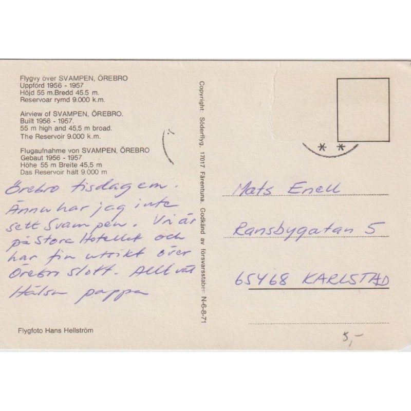 Flygfoto Hans Hellström. Söderflyg. N-6-8-7. Postgått, mangler frimerke, grei stand med flere bretter, se scans for kvalitet.