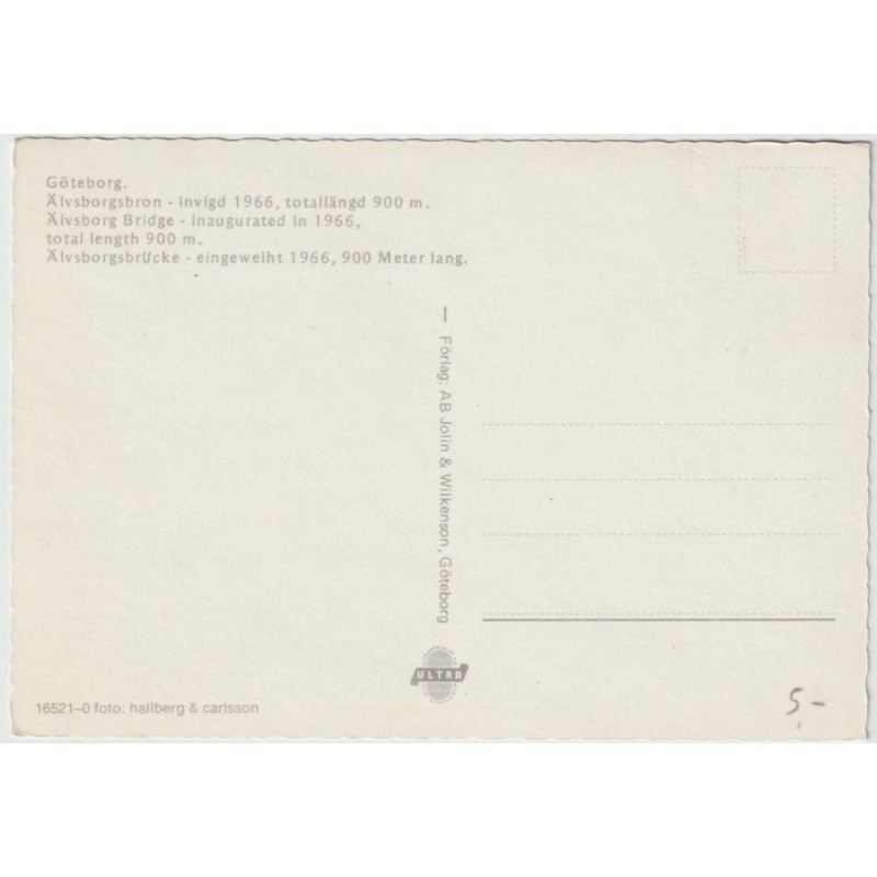 Älvsborgsbron. Invigd 1966, totallängd 900 m. 16521-0 foto: hallberg & carlsson. AB Jolin & Wilkenson. Ikke postgått, veldig god stand, se scans for kvalitet.