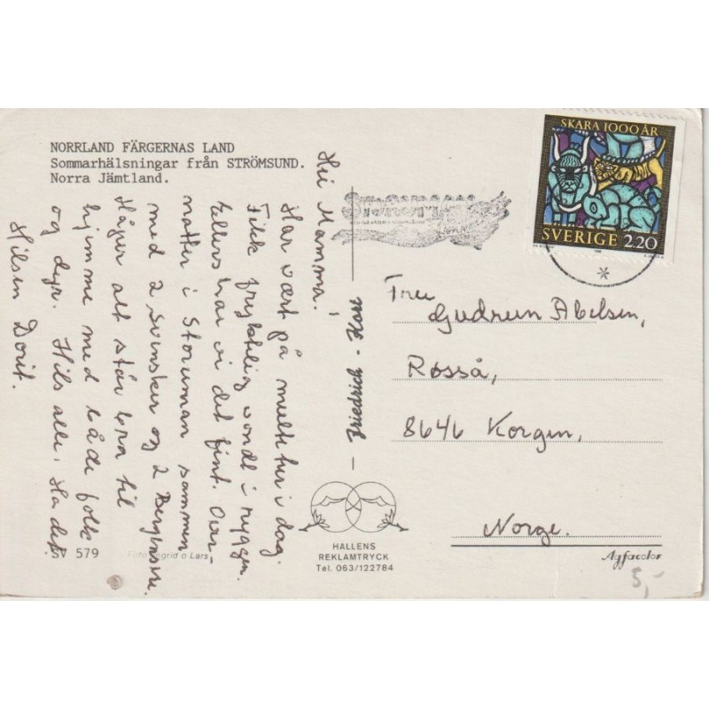 Norrland Färgernas Land. Sommarhälsningar från Strömsund. Norra Jämtland. Hallens Reklamtryck. Postgått, god stand, noe bretter, se scans for kvalitet.