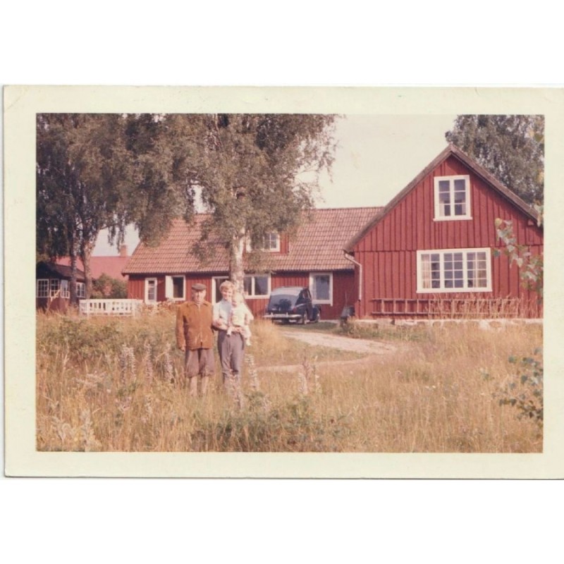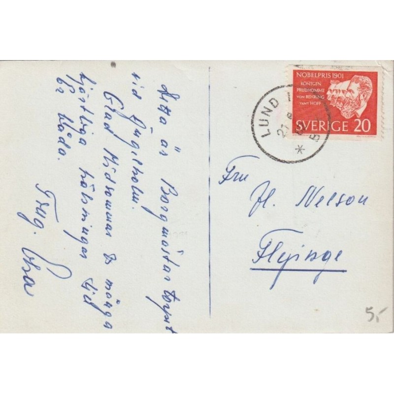 Postgått, god stand, hjørnebrett, se scans for kvalitet. Dette postkortet er uten utgiver og det er ikke oppgitt nøyaktig hvor motivet er fra, men teksten på baksiden er på svensk og ut fra det jeg kan lese, kalles stedet noe sånt som "Borgmästar torpet", Ängelholm. Kortet har også en fin klassisk bil i bakgrunnen.