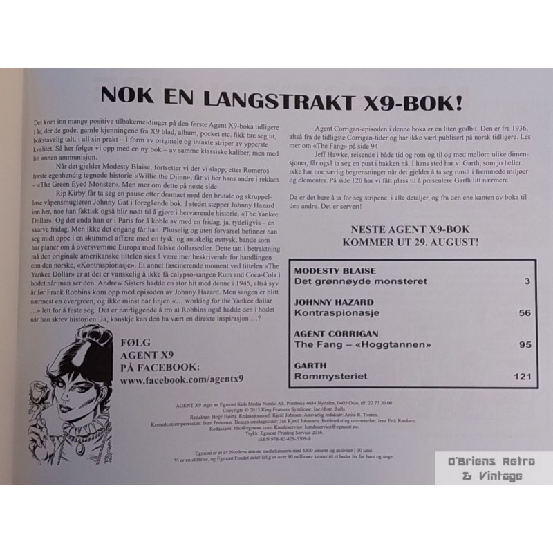 Tverrformat tegneseriebok med Agent X9 i veldig god stand. 7023060122102. Se bilder.