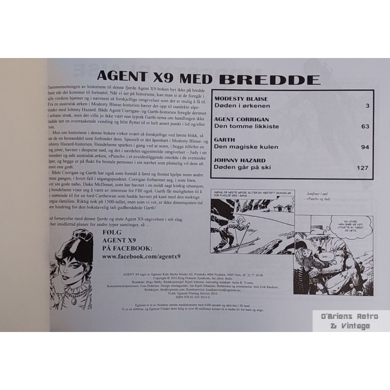 Tverrformat tegneseriebok med Agent X9 i veldig god stand. 7023060222109. Se bilder.