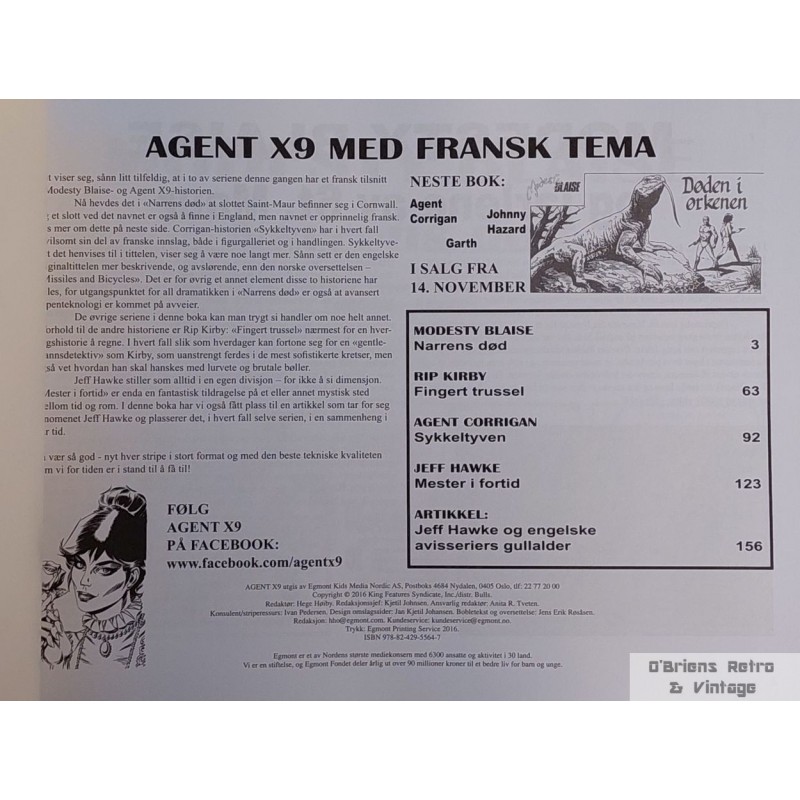 Tverrformat tegneseriebok med Agent X9 i veldig god stand. 7023060122102. Se bilder.