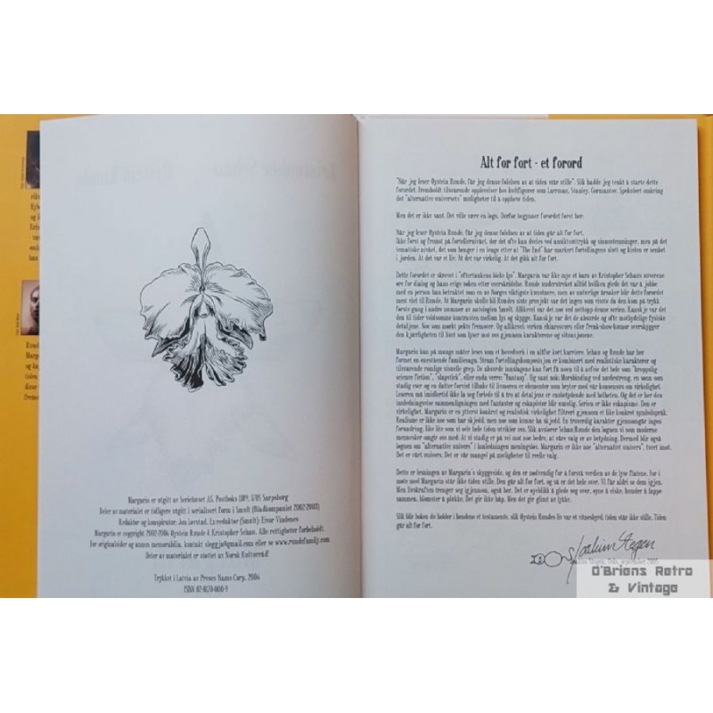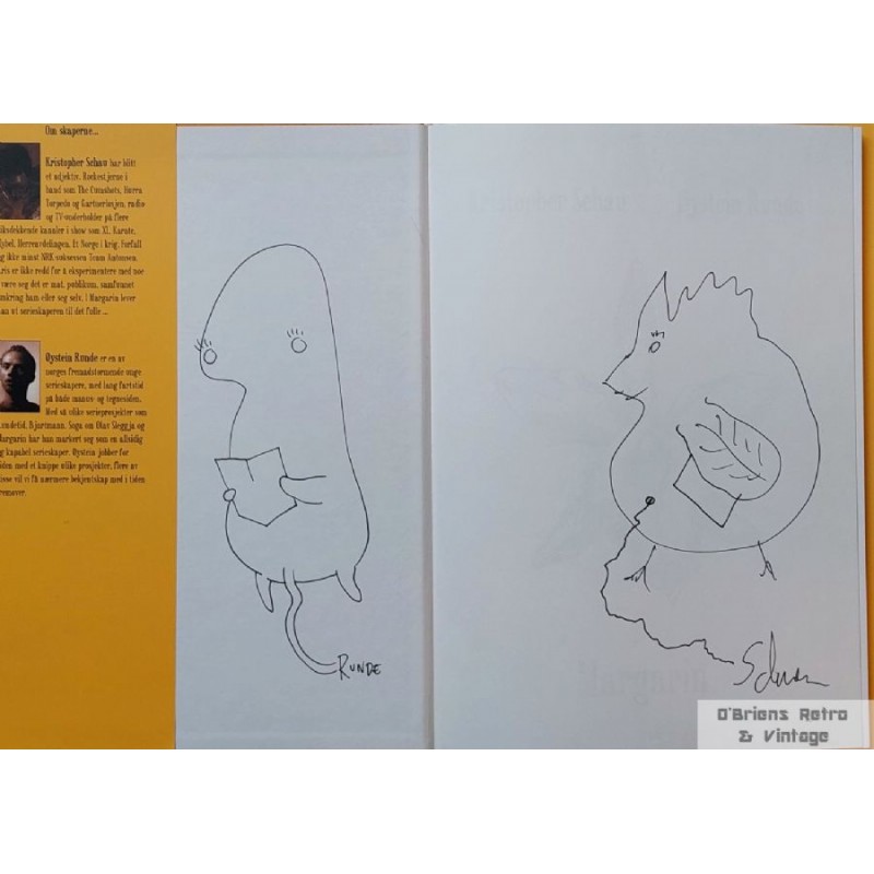 Norsk tegneseriebok i god stand. Innbundet med smussomslag. Se bilder for kvalitet. Boka ser ut til å være signert av forfatterne med tegninger. Kristopher Schau, Øystein Runde.
