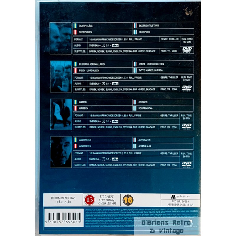 Samleboks med Beck i god stand. Inneholder fire filmer. Alle med norske undertekster. Ekstrem tilstand, Jenta i jordkjelleren, Gribben, Advokaten. 5708758693011.