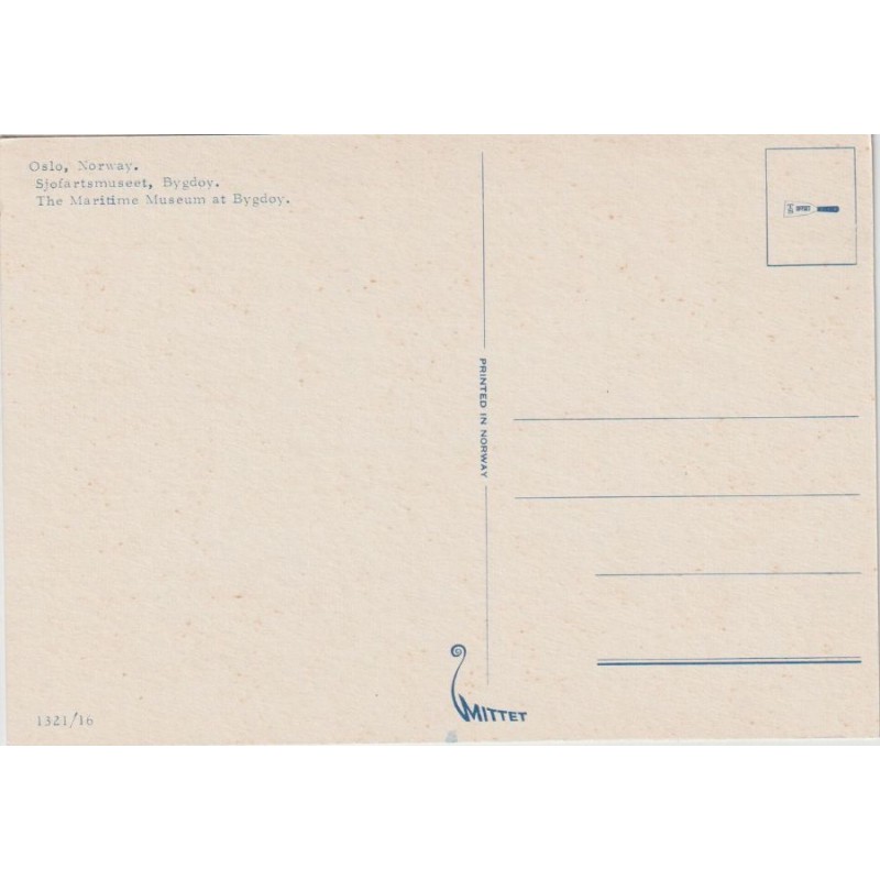 Oslo. Sjøfartsmuseet, Bygdøy. 1321/16. Mittet. Ikke postgått, fin stand, se scans for kvalitet.