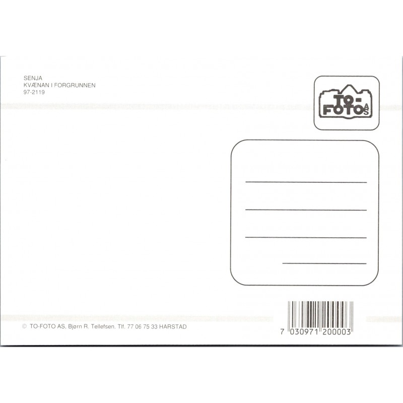 Senja. Kvænan i forgrunnen. 97-2119. TO-FOTO AS. Bjørn R. Tellefsen. 7030971200003. Ikke postgått, veldig god stand, se scans for kvalitet.
