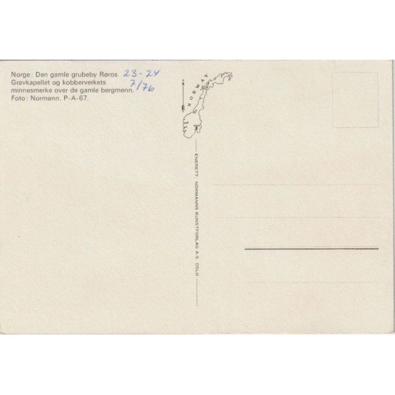Norge: Den gamle grubeby Røros. Normann. P-A-67. Ikke postgått, påskrevet dato, i pen stand, se scans for kvalitet.