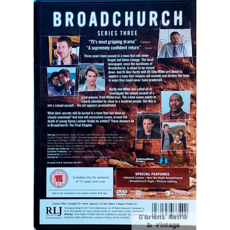 Den avsluttende sesongen av den kritikerroste britiske krimserien med David Tennant og Olivia Colman i hovedrollene. Serien følger etterforskerne Hardy og Miller i en ny sak som ryster det lille kystsamfunnet. Spilletid: ca. 371 minutter. Språk: Engelsk. Undertekster: Engelsk (SDH). Region 2. DVD-en er i fin stand. Se bilder for mer informasjon om innhold og tilstand. Ikke norsk tekst.