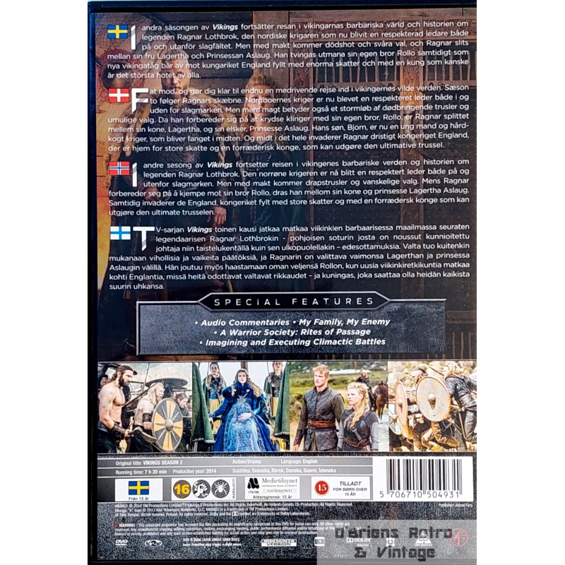 Vikings - The Complete Second Season på DVD. Vikings Season 2. Produsert i 2014. Tekstet på svensk, norsk, dansk, finsk og islandsk. Engelsk språk. 5706710504931.