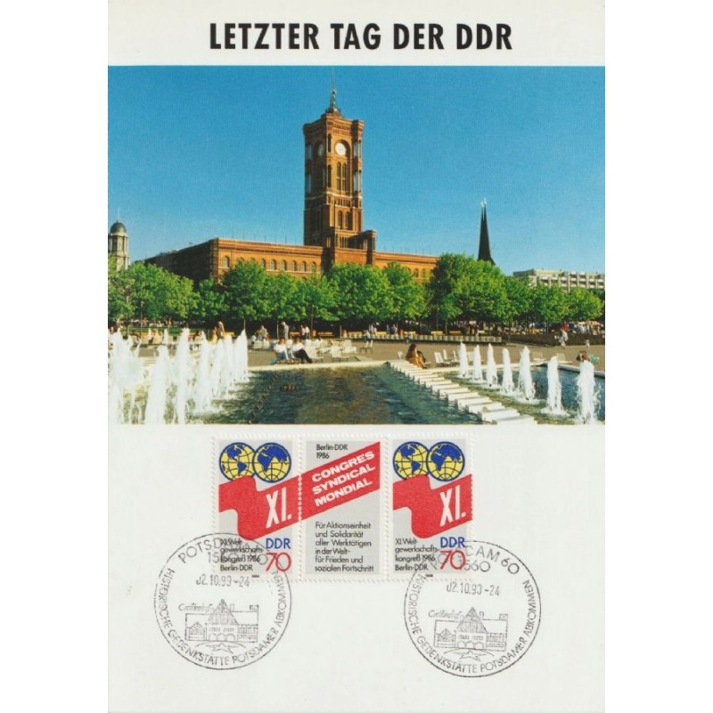 Historically significant East German postcard issued on the final day of the DDR, 2 October 1990 — the eve of reunification.