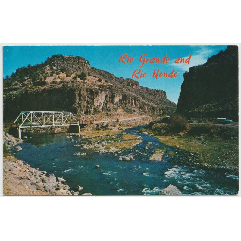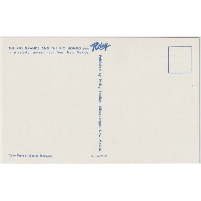 The Rio Grande and The Rio Hondo join in a colorful canyon near Taos, New Mexico. Color Photo by George Thompson. Petley Studios. S-1472-2. Ikke postgått, veldig god stand, se scans for kvalitet.