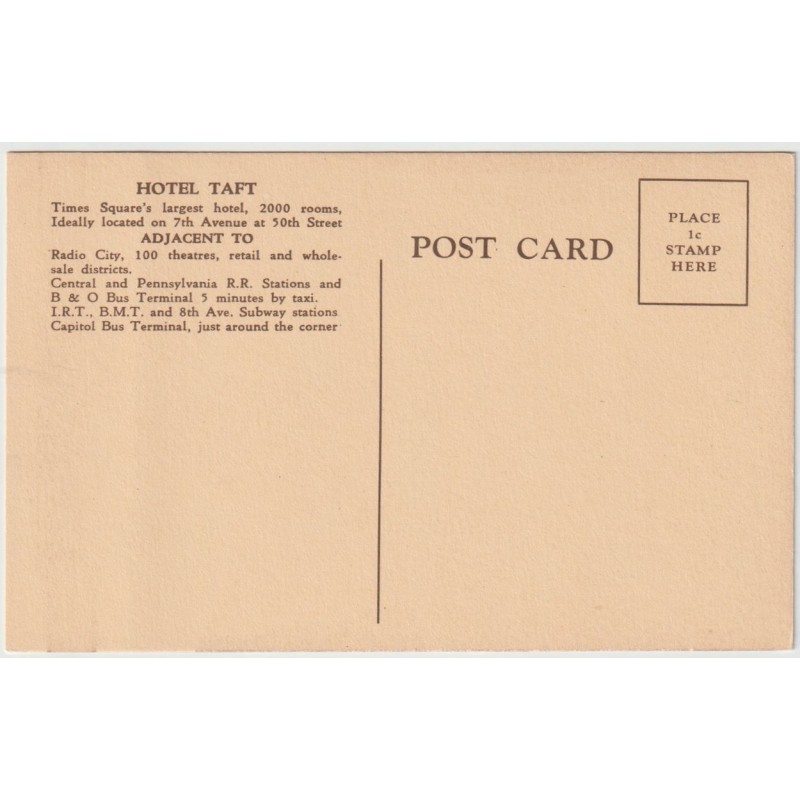 The Taft. Hotel Taft, New York, 7th Avenue 50th Street. Ikke postgått, god stand, se scans for kvalitet.