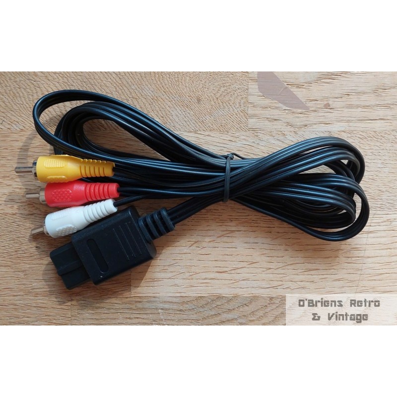 Ny TV-ledning som passer til Super Nintendo, Nintendo 64 og Nintendo GameCube. Composite (gul-rød-hvit). Dersom din TV har SCART-inngang, så kan du bruke denne ledningen med en SCART-adapter.