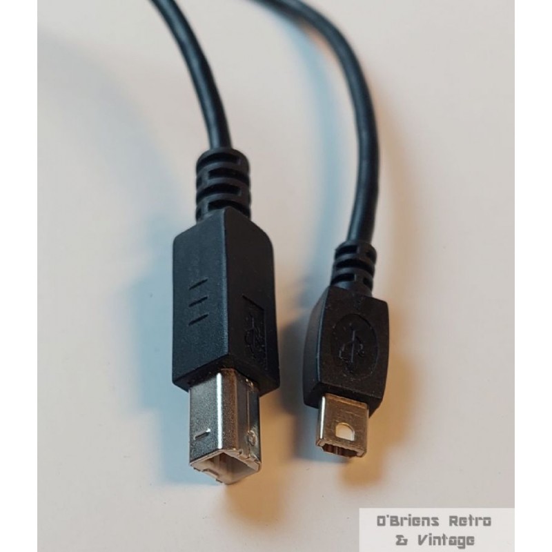 Pent brukt USB-kabel med Mini-A i den ene enden og Mini-B i den andre. Brukes til tilkobling mellom eldre elektroniske enheter som kameraer, MP3-spillere, GPS-enheter og eksterne harddisker.